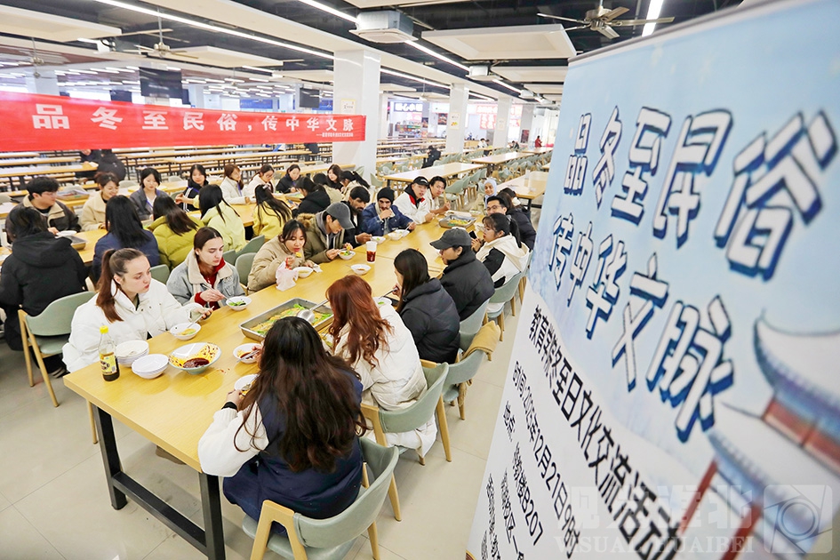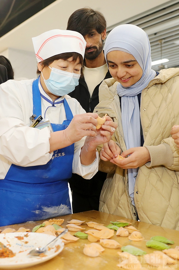 12月21日,是中国传统节气冬至,淮北师范大学国际教育学院联合教育学院组织开展冬至文化交流活动,来自巴基斯坦、俄罗斯、越南、老挝、泰国、哈萨克斯坦、吉尔吉斯斯坦、塔斯克斯坦等国家的留学生与学校师生一起包饺子,感受中国民俗。(摄影 记者 万善朝 通讯员 李巧巧)